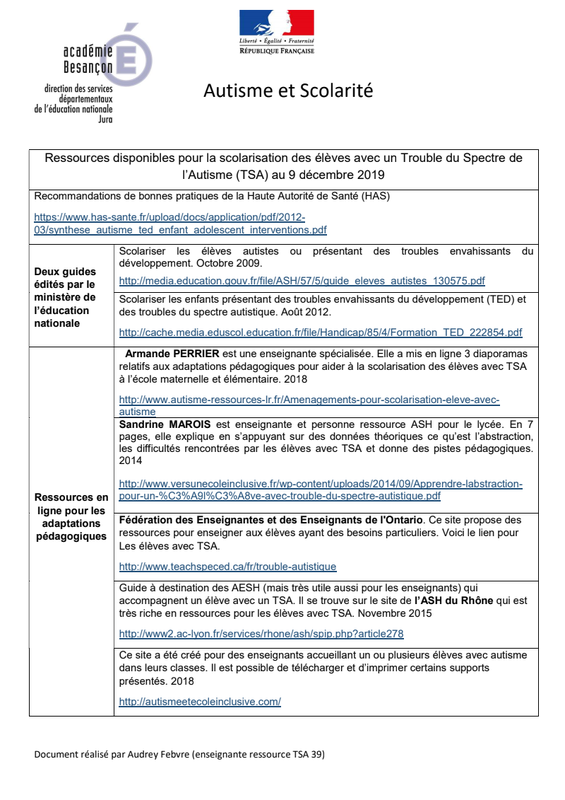 De nombreuses ressources pédagogiques existent sur Internet. Nous souhaitons dans cette rubrique vous proposer des références de qualité, sélectionnées par des enseignants qui travaillent avec des élèves autistes.